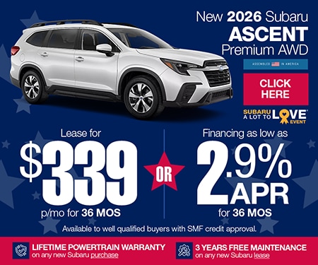 Glanzmann Subaru strives to maintain a complete inventory of new Subaru vehicles. Select from all of the latest new 2025 and 2026 Subaru models including the Outback, Legacy, Forester, Impreza, Ascent, Crosstrek & Solterra. We want to make the buying experience for our customers easy and hassle free which is why we take pride in being the dealership that makes this as simple as possible for you. Please feel free to stop by or contact us to take a test drive with one of our auto experts and see why the vehicles from Subaru are so popular.