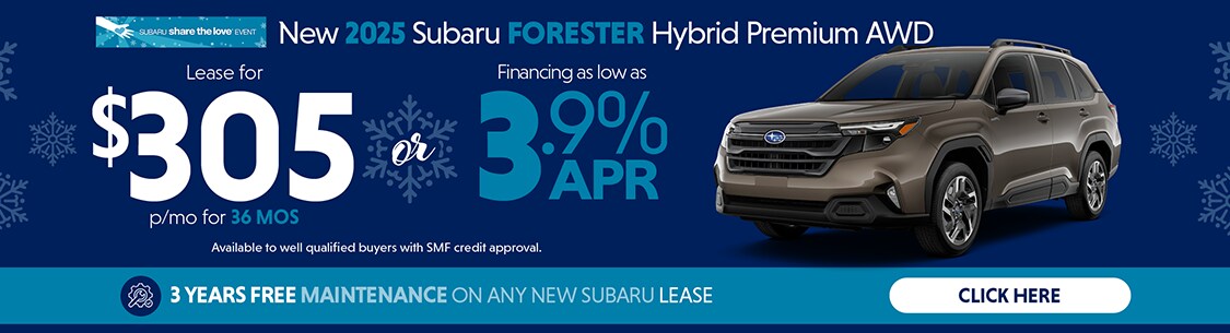 Lifetime Powertrain Warranty is on all new Subaru vehicles purchased at Glanzmann Subaru except Solterra and EV models (excludes leases). 3-YEAR MAINTENANCE on all leases: ICE/Hybrid vehicles include Subaru two-year regularly scheduled maintenance plan plus Glanzmann one-year additional maintenance plan. Electric vehicles include Subaru three-year regularly scheduled maintenance plan. See a Glanzmann representative for complete details. This service contract is not provided or backed by the manufacturer of the vehicle. The manufacturer of the vehicle is not responsible for claims or repairs under this service contract.